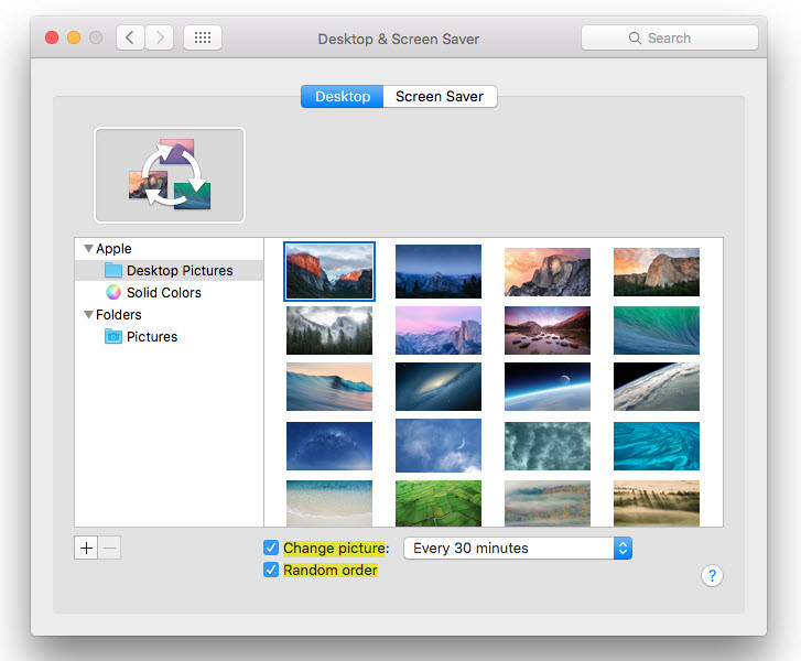 When you click on the desktop pictures folder at the left-hand side. All the Mac OS X El Capitan ready wallpaper will be shown to you. Just select anyone that you like and set to the Mac desktop as wallpaper.
