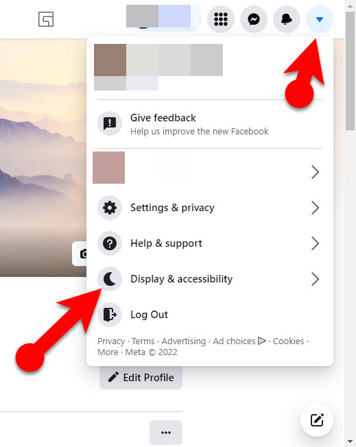 - Login to your Facebook account, then click on the more options which is a rotated triangle.