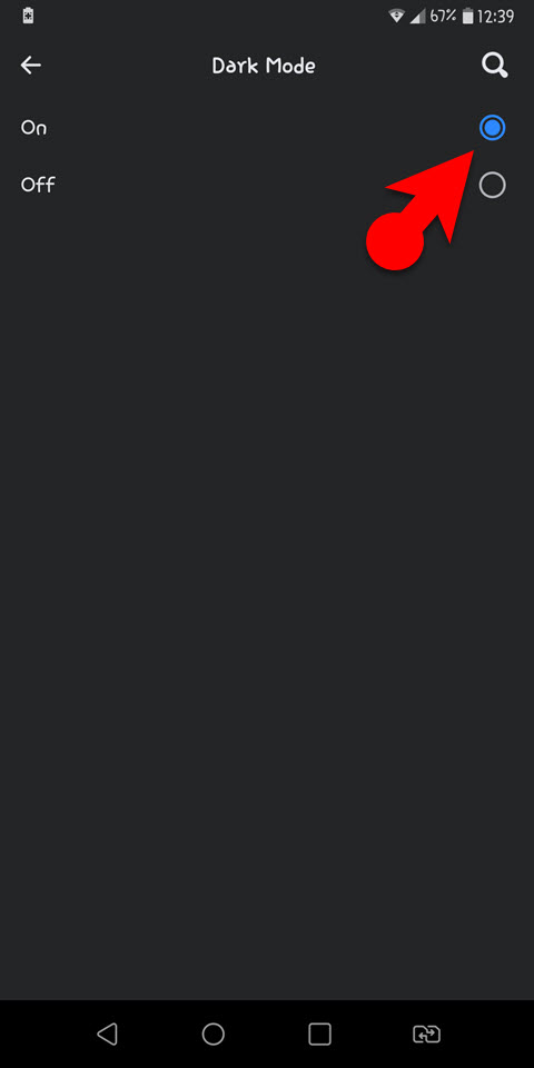 - Tap on the dark mode, then a new window will open where you can enable or disable dark mode.