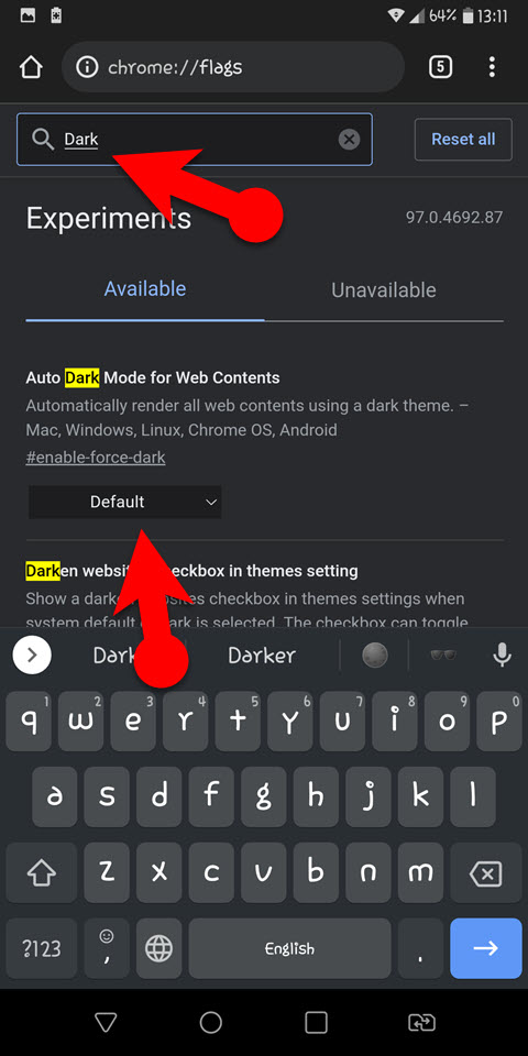 - To enable Dark Mode, on your cellphone on the browser on Facebook, open a new tab and type chrome://flags