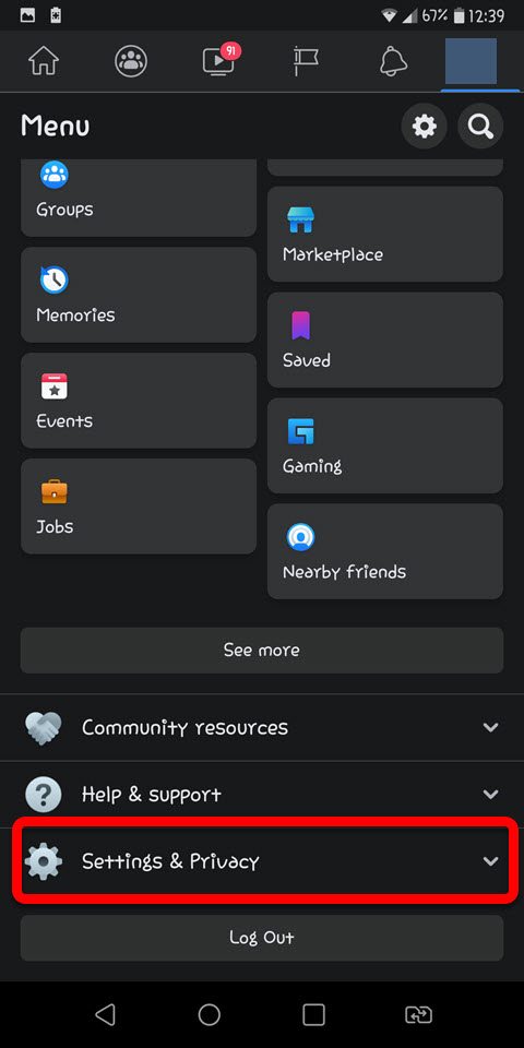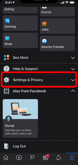 - Tap on your profile, scroll down to the end and choose settings and privacy.