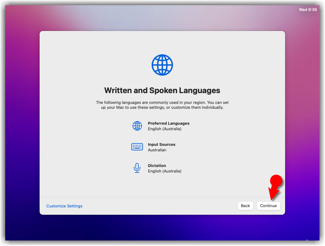 - Choose a Keyboard layout and click Continue. If you don’t agree with preset options then you can customize them. Just click Customize Settings.