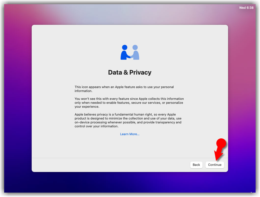 - Click Continue on Make This Your New Mac Window.