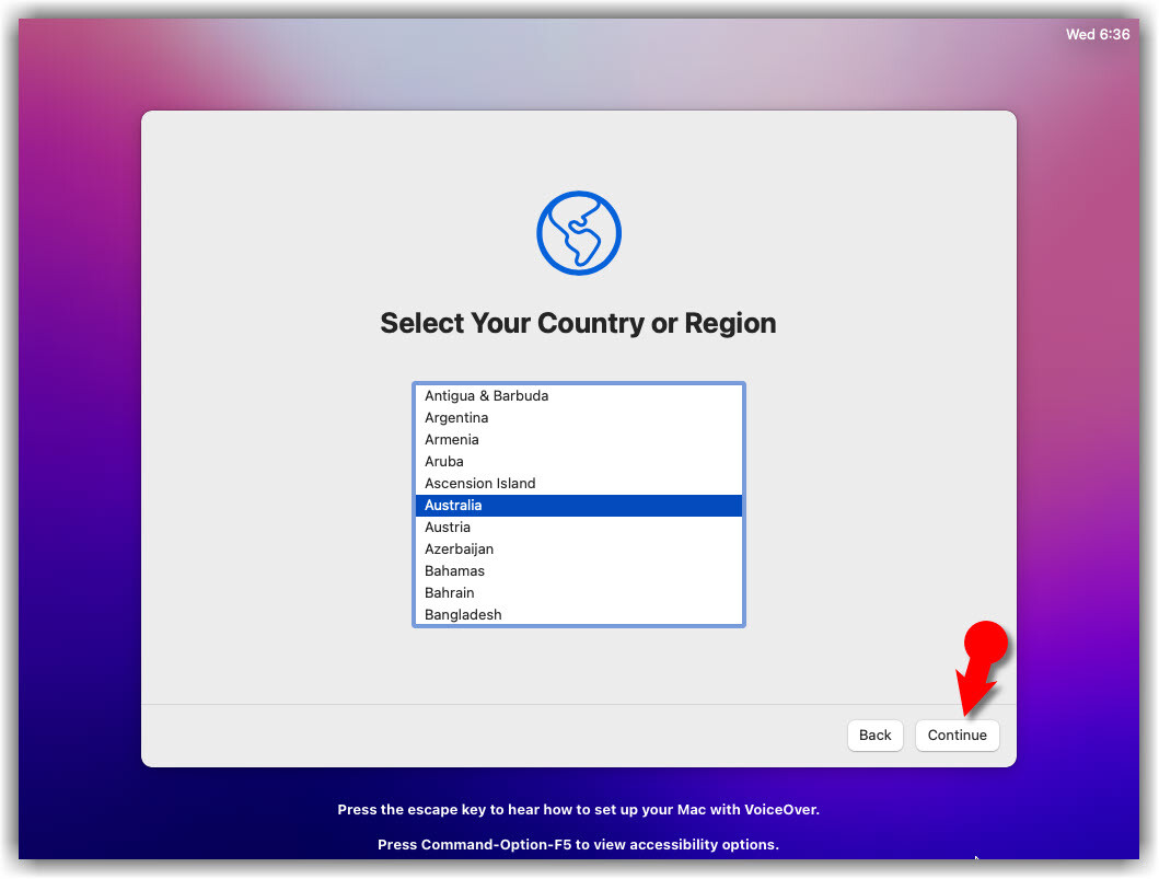 - Select your Country and click Continue.