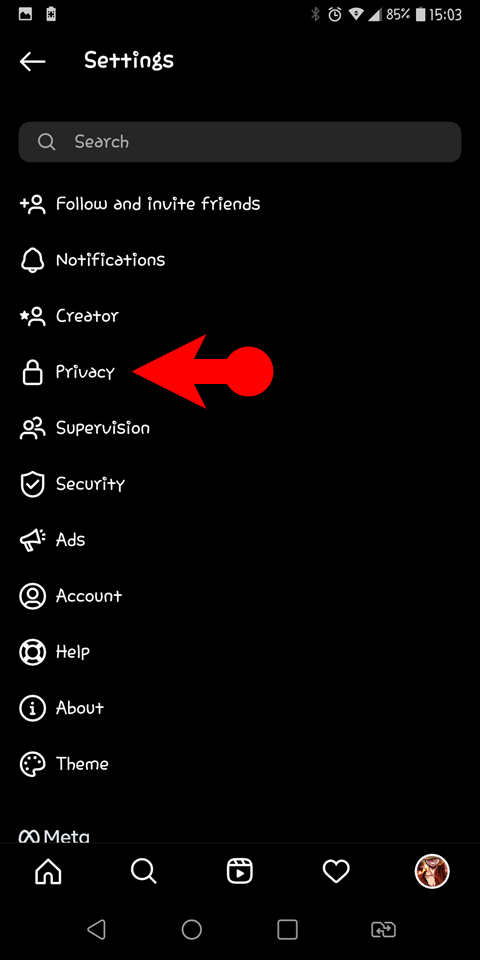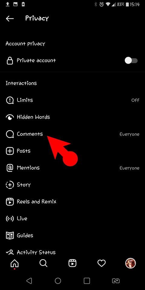 - Tap on Privacy> then select comments.