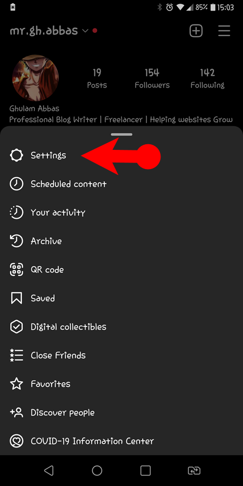 - Open the Instagram app, and go to the settings.