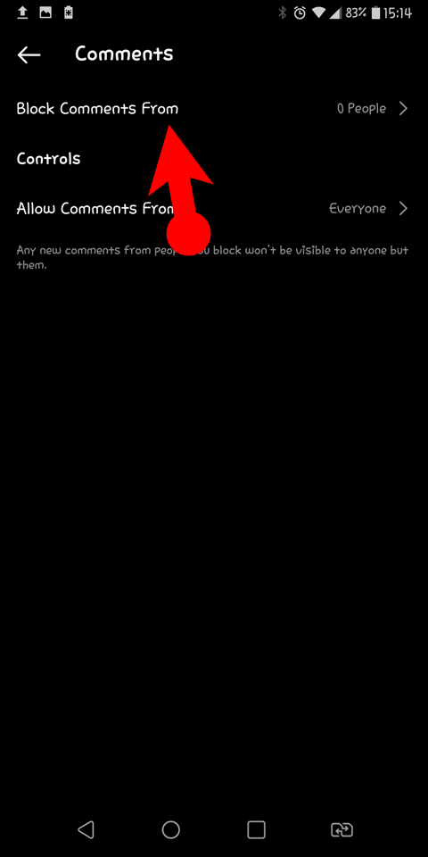 - Tap on block comments from and choose the person that you don’t want to comment.