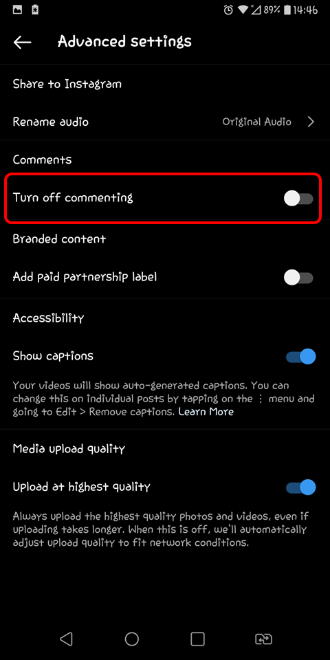 Turn off Comments on Instagram Posts Before Publishing