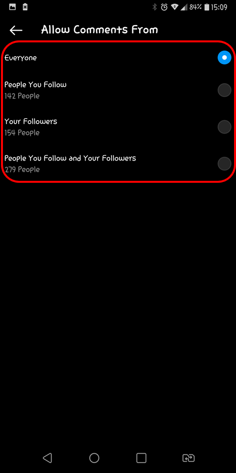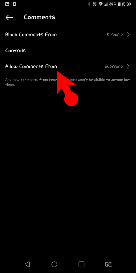 - You have to tap on Allow comment from.