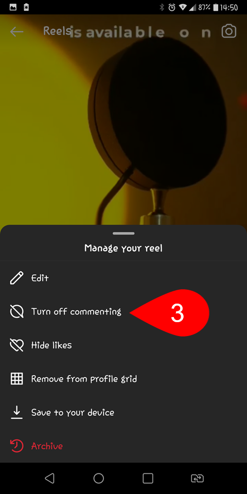 Turn off Commenting on Instagram Reel