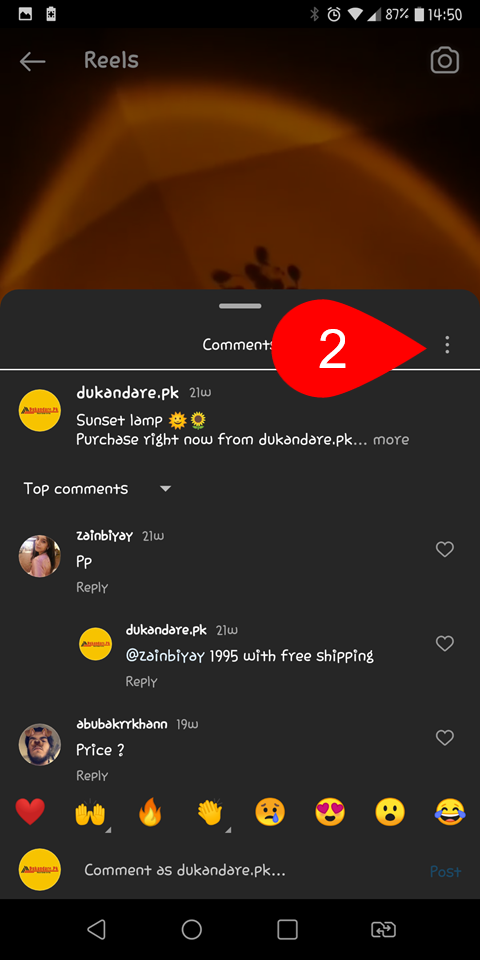 - Once the reel started playing, go to the three dots at the bottom of your screen.
