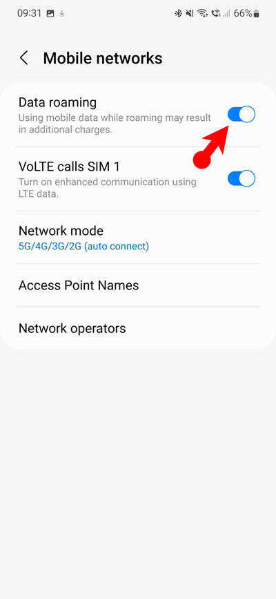 Steps to Turn on/off Data Roaming on Samsung Galaxy Phone